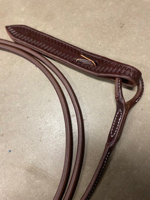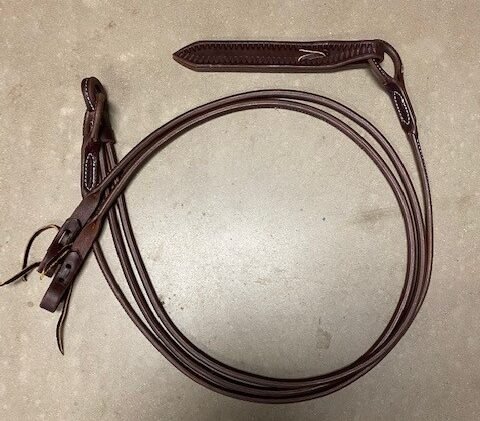 New Rolled Leather Romel Reins. Great pair of reins for work or practice! Heavy oiled and supple leather. 57” rein.
